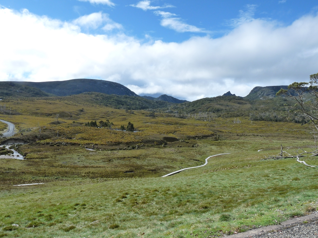 Am Flughafen angekommen, ging’s gleich mit dem Mietwagen nach dem Frühstück in die Cradle Mountains, einem Nationalpark mit fantastischen Bergen, wunderschön gelegenen Seen und tollen Walking-Tracks. Leider hatte ich nur von Samstag bis Dienstag Zeit und musste mir die Sahnestückchen Tasmaniens rauspicken. Die Fahrt dauerte bis in den Nachmittag, es war allerdings noch Zeit für einen 2-Stunden-Track zum „Crator Lake“.