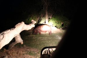Inzwischen liege ich in meinem Dachzelt und campe (illegal) an einem Wasserloch inmitten der Zentral-Kalahari. Am Wasserloch trinkt gerade eine Giraffe und entfernt kann man das Gebrüll der Löwen hören. Hinter meinem Zelt raschelt irgendwas im Gebüsch, aber ich habe hinten kein Fenster und kann nicht schauen. Außerdem wäre es sowieso zu dunkel. Vielleicht wieder ein Python, so wie das Monster, das mir gestern beim Zeltaufbau über den Weg gelaufen ist?